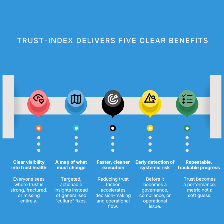 A diagnostic tool for understanding where trust is strong, and where it is silently failing. It: